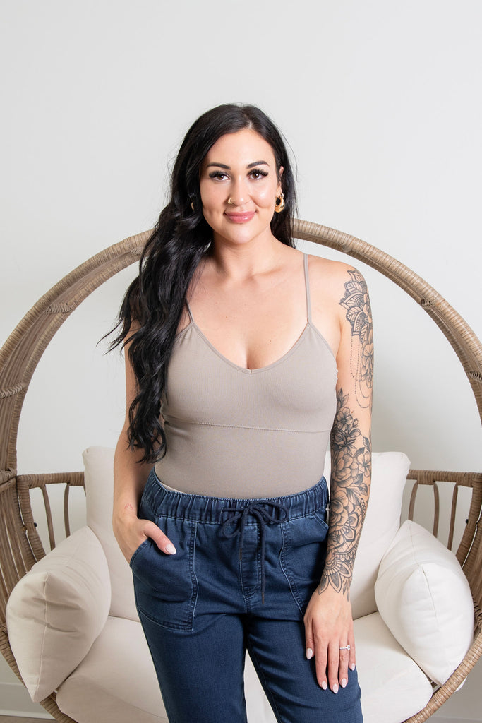 This seamless cami is essential for layering, so you don't have to worry about unsightly lines and lumps. And of course, the black color goes with everything in your wardrobe! Look good without the fuss with this { DEX } layering essential.