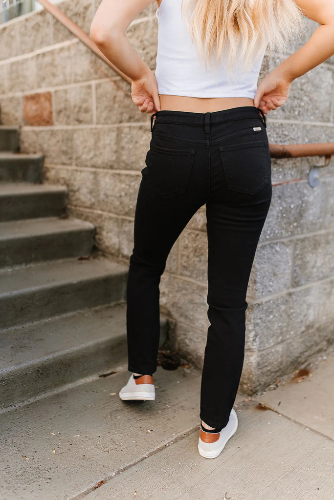 Your new fav go-to jeans featuring a high waist, light distressing at the knees and a stylish 5 button fly. Everyone needs the perfect pair of black jeans and these are IT!
