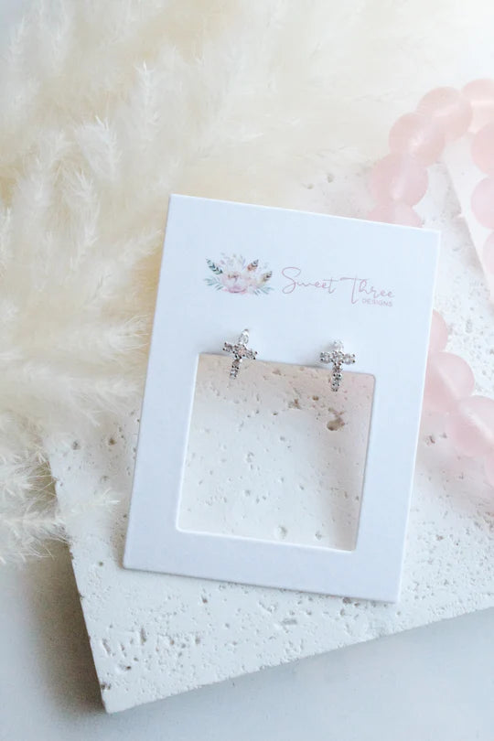 Graceful and meaningful, the Blessing Hoops feature petite cross charms lined with shimmering CZ stones. Crafted in sterling silver with a dainty hoop design, they add a soft spiritual touch to any look. Lightweight, elegant, and perfect for everyday wear or layering with your favorite studs.
