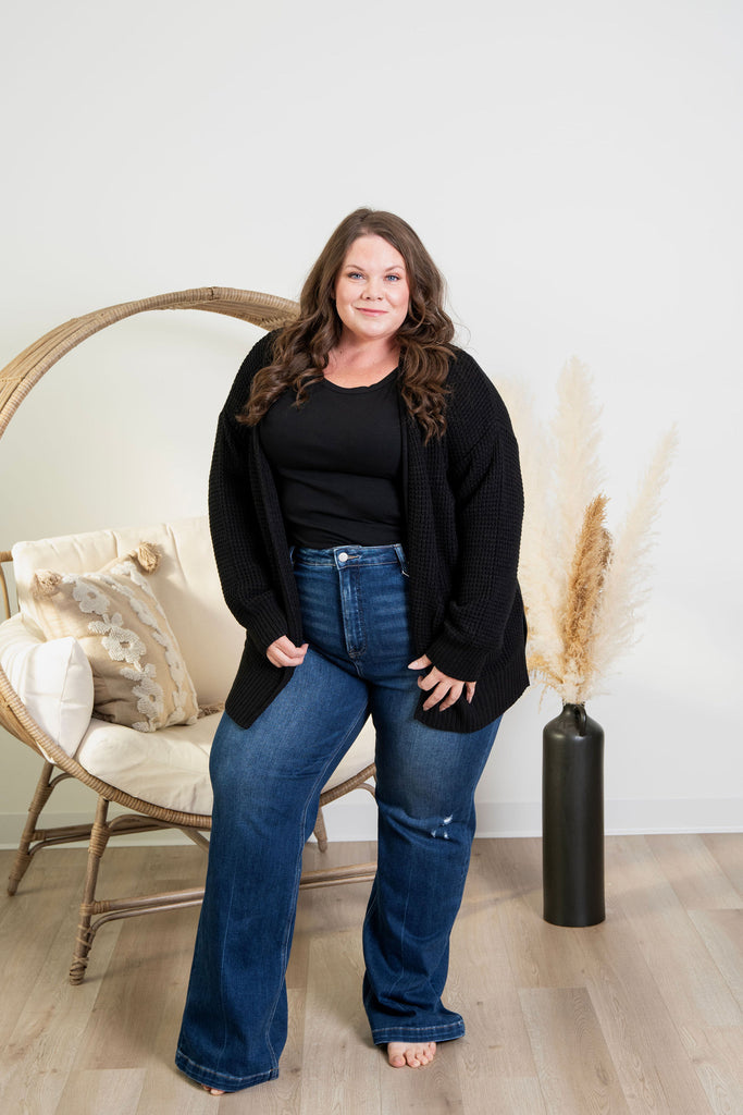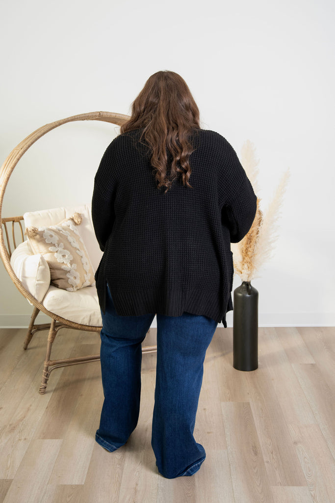 Meet your new favorite layer! The Charlie Cardigan in black features a delightfully textured waffle knit that's as charming as it is comfortable. Throw it on over anything and instantly elevate your vibe—whether you're going for cozy-chic or effortlessly put-together. This pretty piece is your go-to for those moments when you want to feel snug without sacrificing style. Simple, sweet, and endlessly wearable.