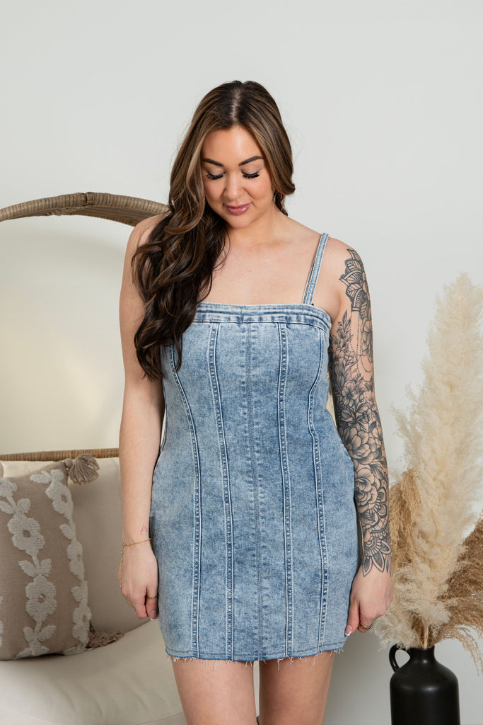 The Danielle Dress is your go-to summer dress. Crafted from stretchy denim, it moves with you for all-day comfort. Removeable straps let you style it your way—wear them up for classic appeal or take them off for a strapless look. Adorable and versatile, this dress is perfect for warm weather adventures, casual outings, or effortless weekend style.
