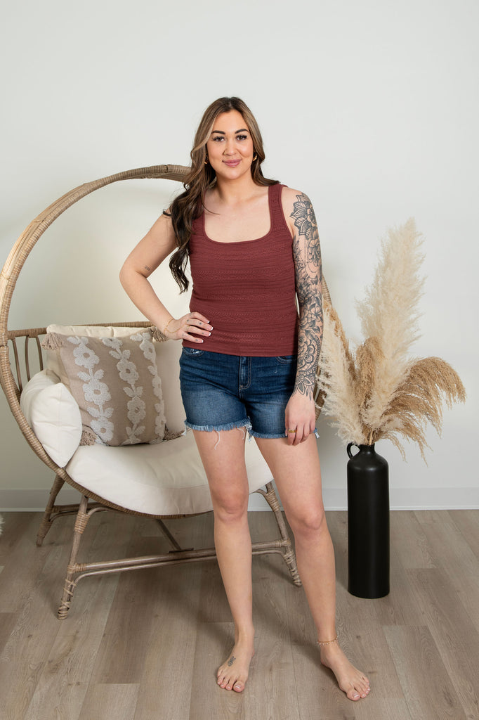 A quietly sophisticated tank that works as hard as you do. Its textured surface brings dimension to any look while remaining beautifully understated. Layer it, wear it alone, or build an entire outfit around it—this is the kind of piece that earns its place in your closet season after season. Timeless simplicity with just enough character to stand out.