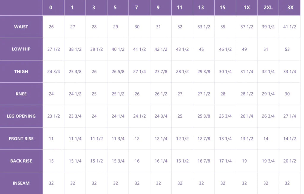 Judy Blue 0/24 1/25 3/26 5/27 7/28 9/29 11/30 13/31-32 16W 18W 20W