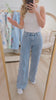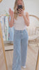 FIT: high rise, stretch- wide leg, hemmed bottom hem