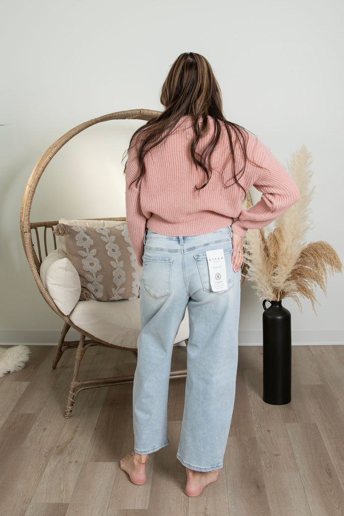 Introducing the Stephanie Denim by Risen—your perfect entry into barrel jeans. This light wash style offers a gentle silhouette shift without overwhelming your everyday look. Crafted with comfortable stretch fabric, it moves with you throughout the day while maintaining its polished appearance. The clean, undistressed finish keeps things timeless and versatile, making it easy to pair with your favorite tops and accessories. Discover effortless style with a modern twist.