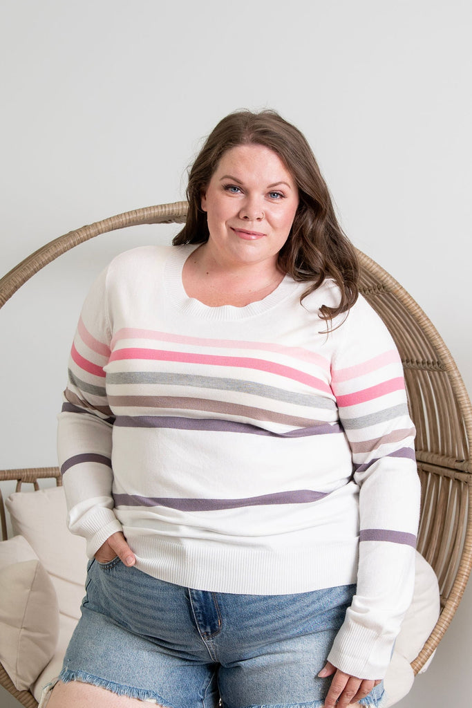 Wrap yourself in nostalgia with the Sweetest Memories Sweater, a lightweight long-sleeve layer that's as charming as it is versatile. Featuring delicate pastel stripes in soft, dreamy hues, this cozy piece brings a touch of whimsy to any outfit. Perfect for layering on cooler days or wearing solo when the weather's mild, it's the kind of sweater that makes you smile every time you slip it on. Effortlessly cute and endlessly wearable.